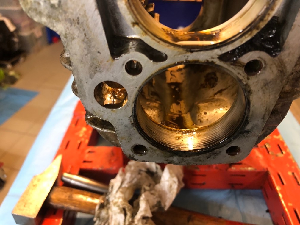 >> sortir toujours avec le jet ou une lame de tournevis, le roulement d'arbre primaire (il est monobloc) en faisant une poussée sur sa cage extérieure