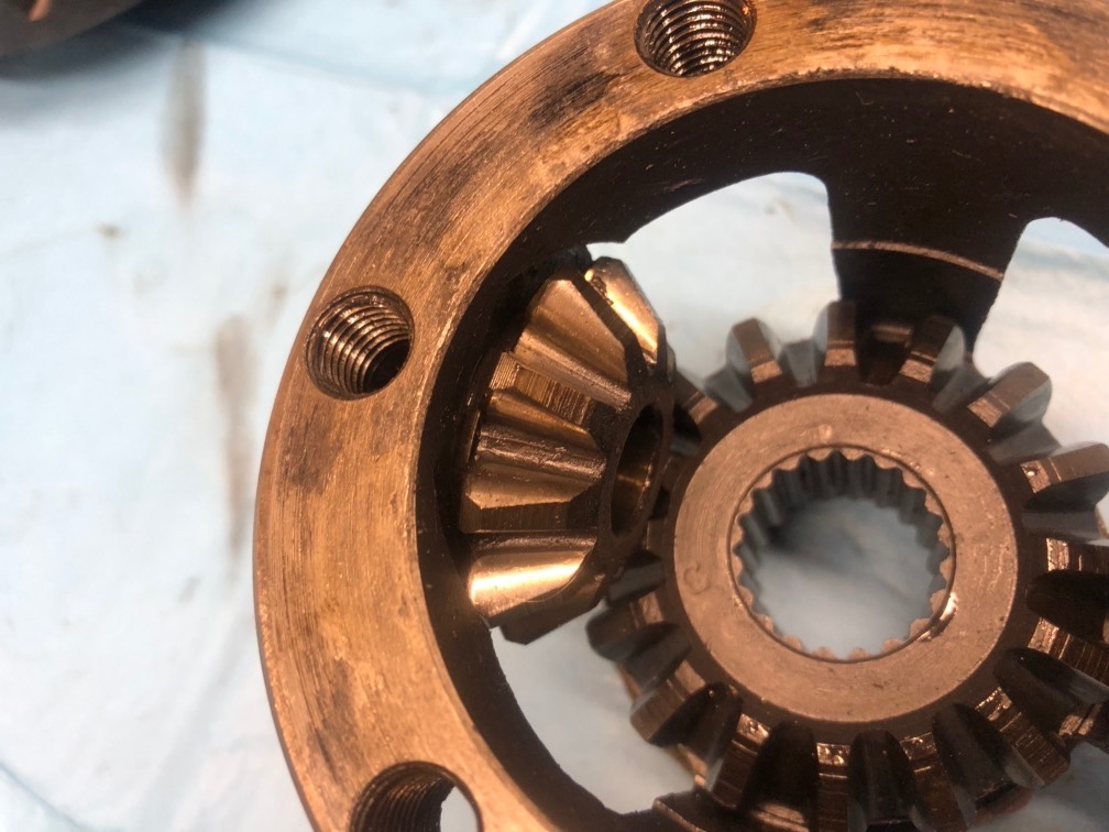 Dans notre BV que nous démontons, le pignon de MA présente des bandes de contact mais tourne sans jeu, sans bruit et les entrées de dent sont correctes. Je ne vais donc pas le retirer.