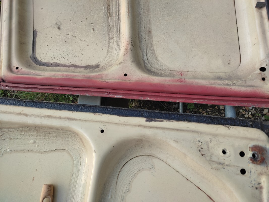Sur ma Charleston j'avais passé de la cire dans les portières par les trous (vitres, poignées de portes....) après je me dis que si il y avait de la rouille ça ne doit pas être très efficace, je passerai sans doute du Rustol Owatrol, si ça déborde un peu à l'intérieur, ces pas trop grave il y a le panneau de porte, à l'extérieur il ne devrait pas y avoir de débordement. Lorsque j'ai posé ma feuillure, j'avais brossé, passé 2 couches de férose, le rouge c'est de l'apprêt de chez Carter Cash ou la fin de ma bombe de chez spray max , c'est soudé depuis plusieurs mois ça n'a pas l'air de bouger.