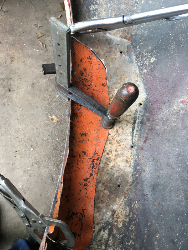 Je positionne un bout de cuivre assez épais sous la tôle à souder (cette méthode permet de faire baisser la température, et ainsi, évite, autant que possible, de percer les tôles fines !)