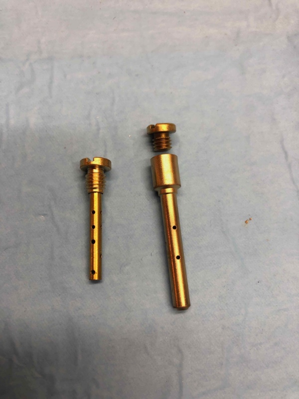 Le gicleur d'air est monobloc avec le tube d'émulsion, sur le 1er corps (à gauche, sur la photo) et dissociable sur le 2 corps (à droite).