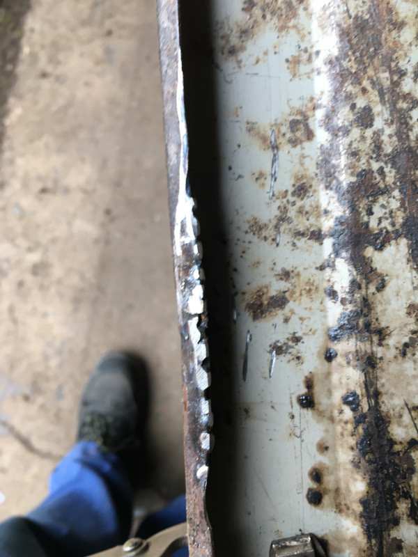 J'ai récupéré cette tôle (comme tu le sais déjà, je récupère à peu près tout...) qui était donc déjà partiellement formée, et que j'ai commencé à reformer pour pouvoir la souder ensuite en "bord-à-bord".