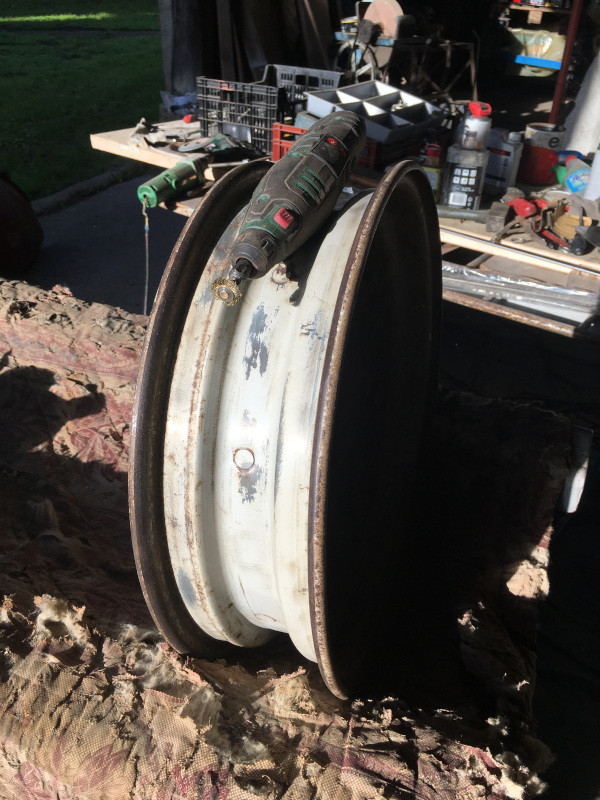 J'ai donc commencé, dès l'aube, à poncer les cinq jantes. Et j'ai terminé à 13 heures.