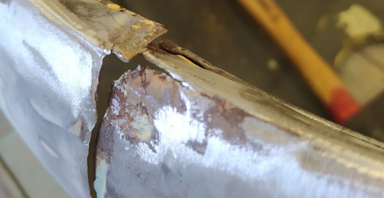 Maintenant j ai vos avis sur la façon de procéder pour refaire se genre de déchirure j avais pense à ressouder 2 patte de tôle par l'intérieur pour maintenir les 2 partie puis mastic