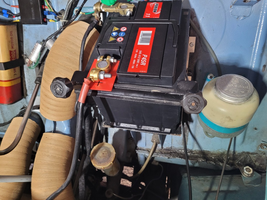 Petite pause de 30' sans mettre la batterie hors circuit pour simuler un arrêt au supermarché, tension avant démarrage 12,9V, ok elle démarre.