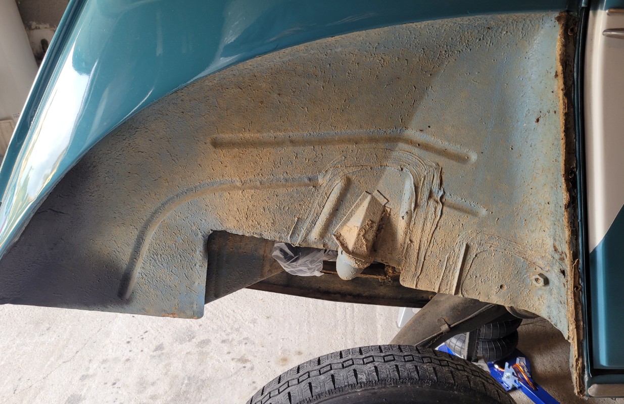 Grâce à mon nouveau cric (magique), je soulève mémère et hop au karcher, puis séchage à l'air comprimé. C'est plus propre, on gratte les quelques pointe de rouille... ...avant de les traiter Oui, j'y suis allé en mode bourrin, je reconnais, il y en a un peu partout.