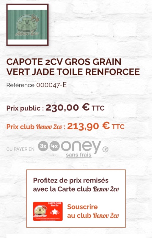 Pour la petite histoire je prenais toutes mes pièces en 2021 chez 2CV passion, il avait une pub avec une 2cv avec la capote bicolore rouge/blanc mais après les avoir contacté aucune possibilité d'avoir une capote de ce genre.