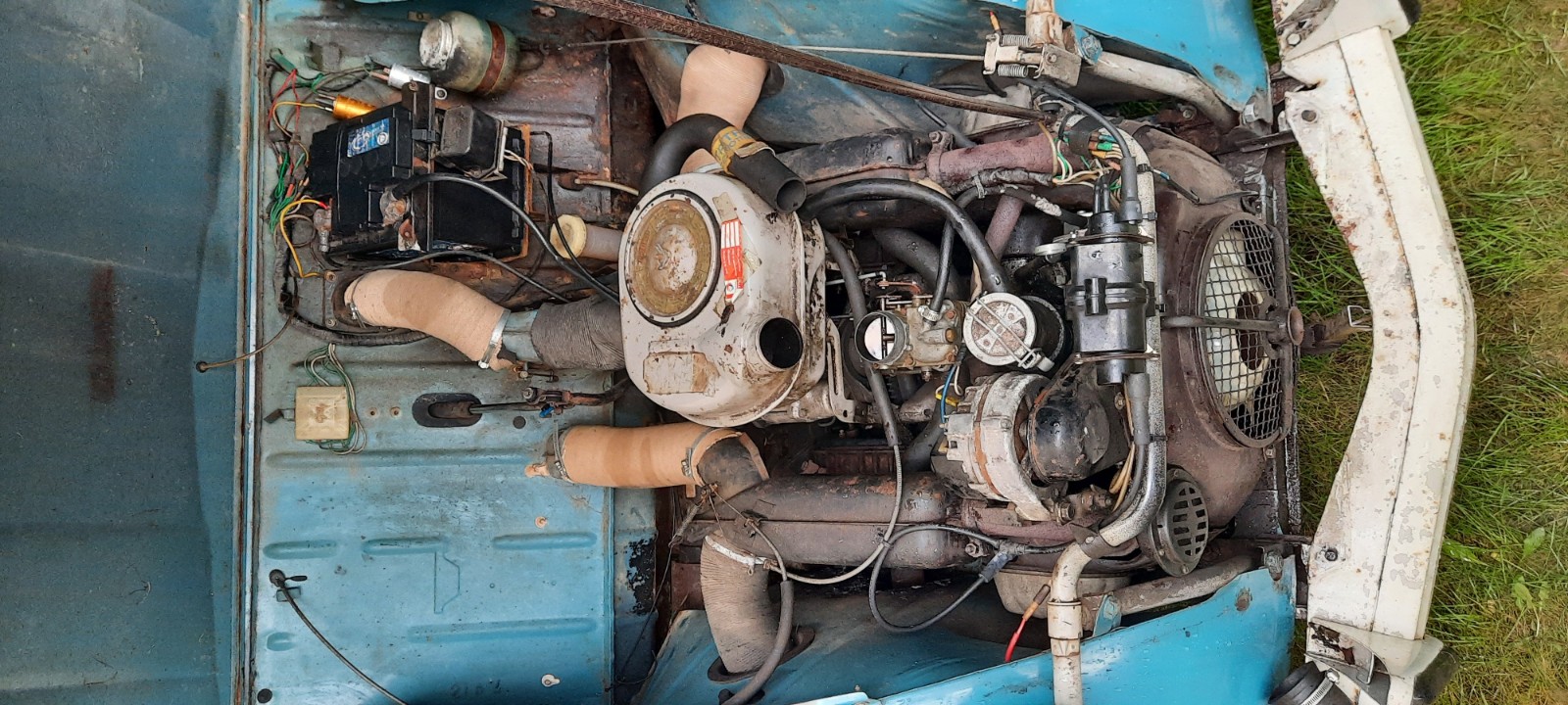 Bon j'avais prévu de déposer la caisse pendant mes prochains congés mais j'ai reçu un appel de beau-papa alors que je rentrai à peine du travail hier et du coup nous voilà partis pour bosser sur la deuche tout un après-midi 😅.