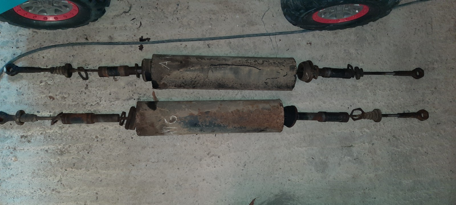 Les fameux pots de suspension. J'ai relevé les cotes de réglage pour me remettre au même niveau quand ce sera le moment de remonter
