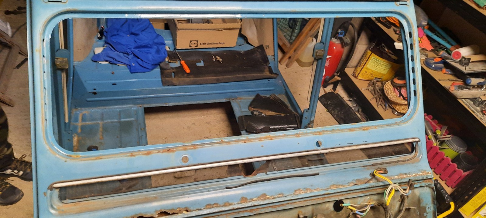 Il a depointé les tôles à plusieurs endroits et découpé là où c'était nécessaire. Encore plus de boulot que prévu mais il a une formation de chaudronnier donc la soudure et la refabrication de pièces ça le connaît