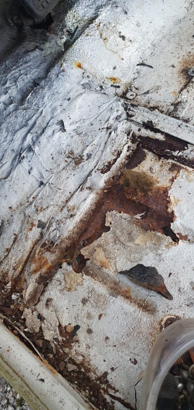 Alors oui, ça peut impressionner de prime abord, mais vu que de toute façon, il change systématiquement tablier inférieur, planchers / bas de caisse, caisson sous assise et plancher de coffre, leurs état de départ importe peu ;o) => Cf les photos plus haut d'un précédente resto !