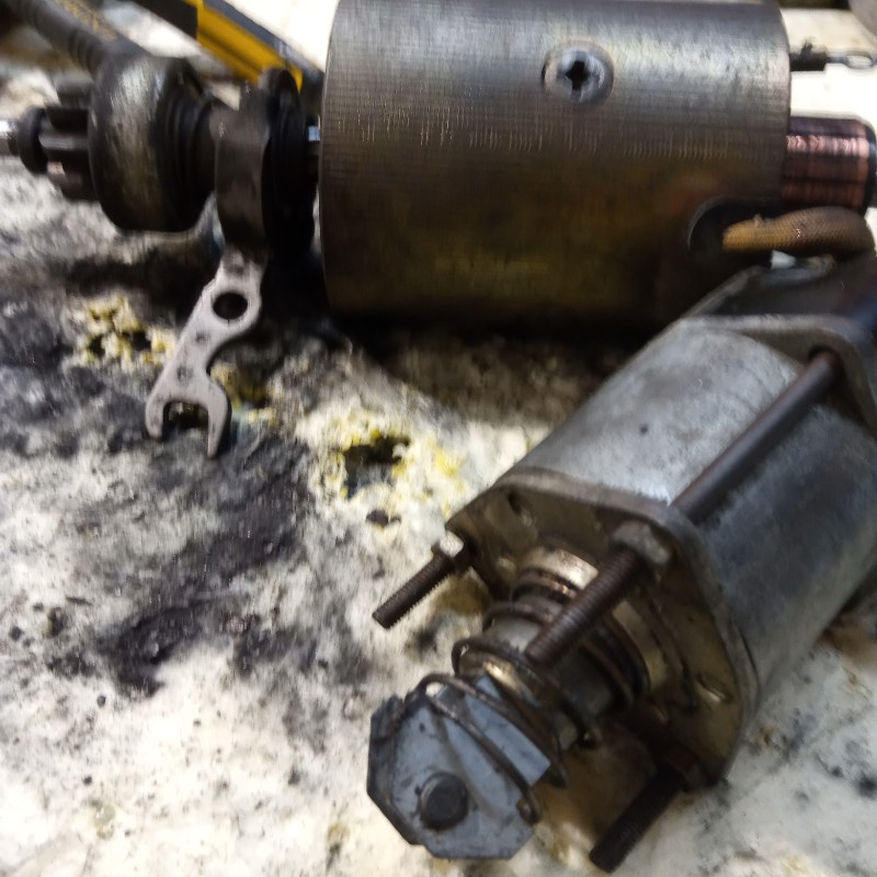 La restauration de mon moteur étant terminée (sans essais démarrage!), je m'attaque aux périphériques. Aujourd'hui, le démarreur! Fortement encrassé, j'ai décidé de le démonter entièrement pour le nettoyer: c'est la première étape de l'entretien.