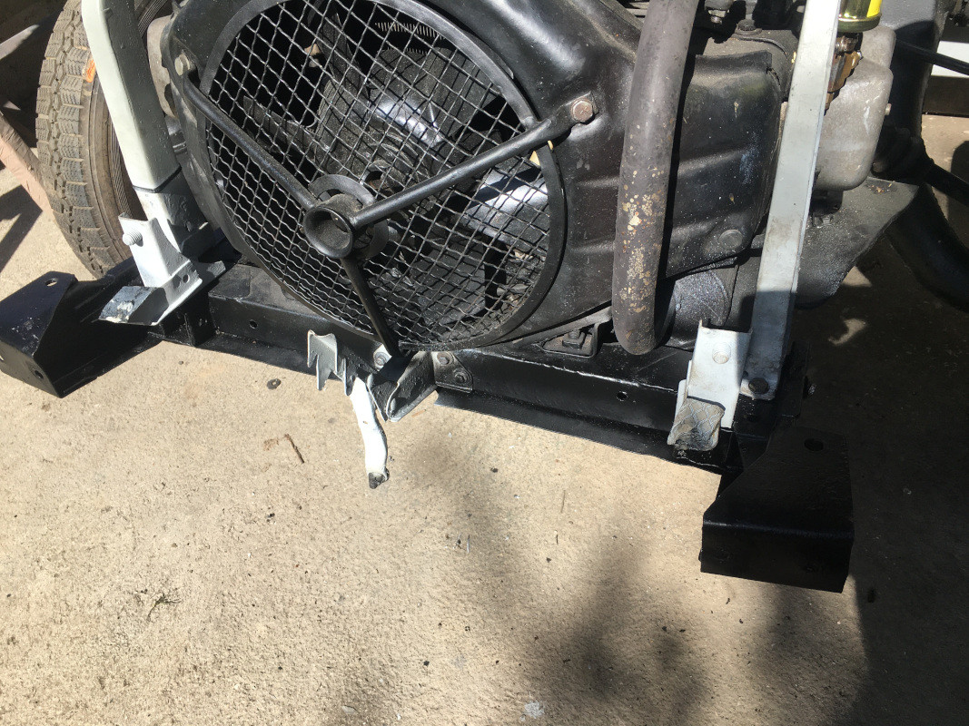 Il m'a fallu donc démonter le pare-chocs, découper la tôle que j'avais ajoutée (!), repercer les trous des tampons inférieurs du capot, et bien sûr, repeindre tout ce petit monde...