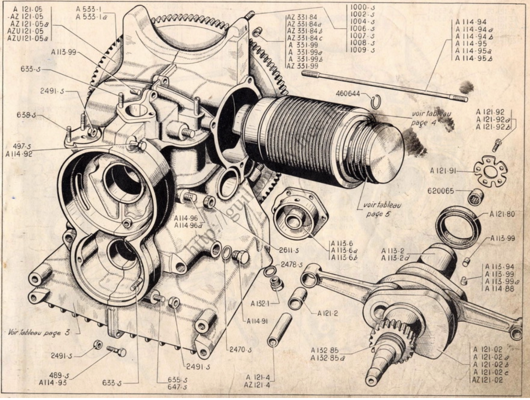 Moteur 2cv type A 1955 - fentes au dessus du piston