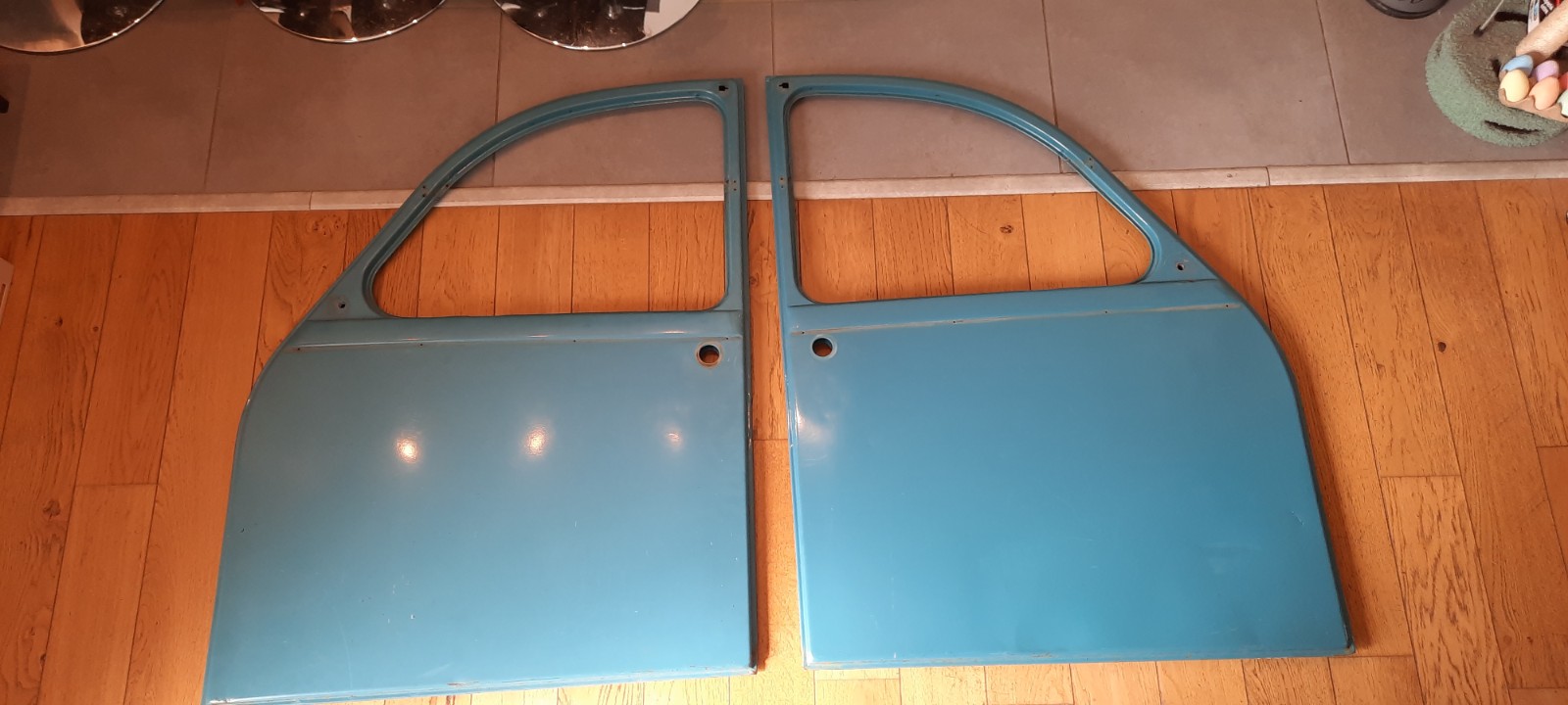 J'ai repris les côtes pour le replacer au même endroit quand tout sera repeint. J'ai aussi désossé les 4 portes pour les préparer au poncage et à la peinture, il ne me reste que les 2 vitres arrières à déposer avec leur joint. Il faut juste faire attention à ne pas faire tomber la platine qui tient la serrure quand on dépose le tout