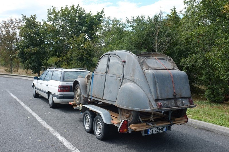 Après chargement derrière notre brave XM, c'est parti pour 700km entre l'Alsace et le Cantal :
