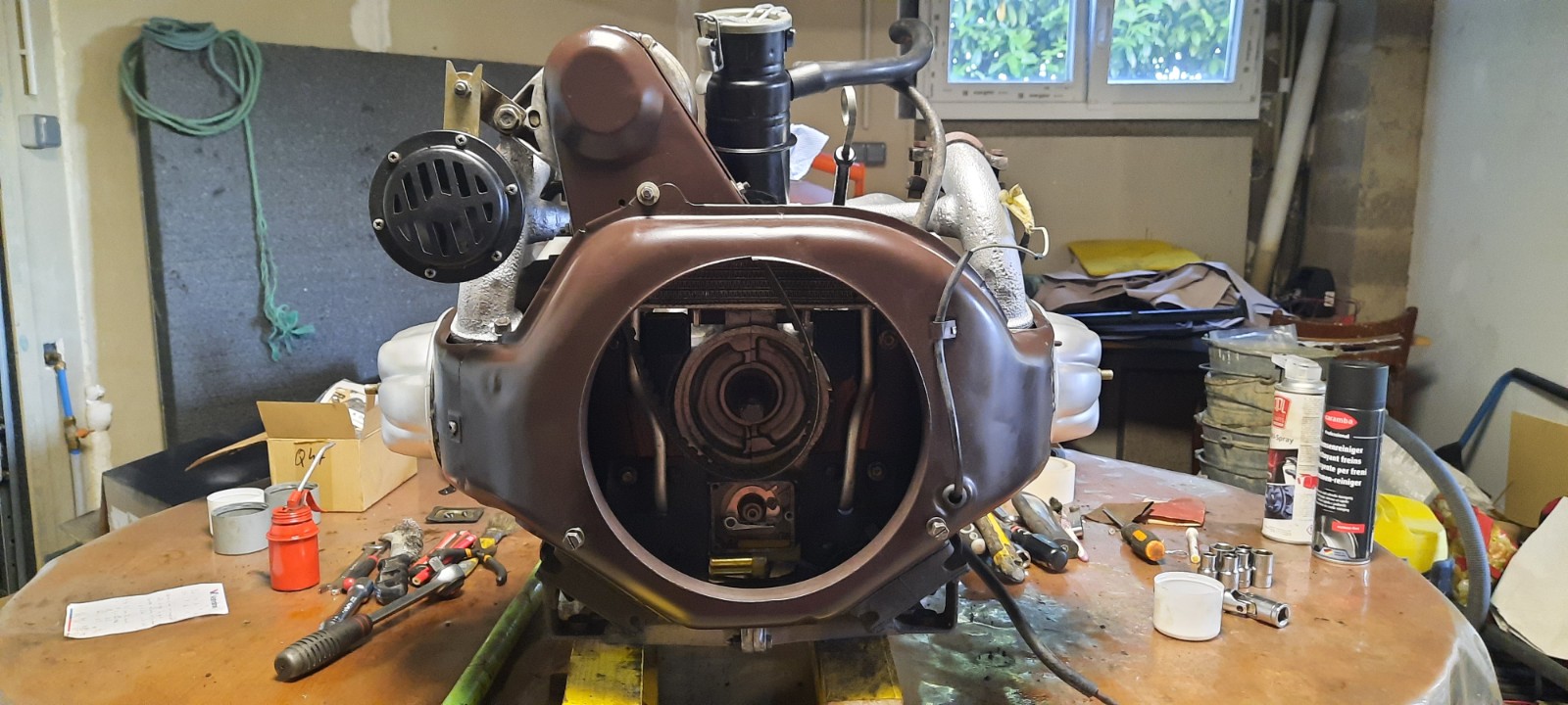 Je ne remonte pas encore le ventilateur pour pouvoir régler l'allumage et il le reste le carburateur à attaquer. Tous les joints seront changés demain soir.
