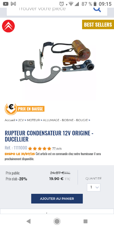 J'ai vu la photo du rupteur et du condensateur que tu m'as envoyée. Je ne sais pas comment apprécier la qualité de ces pièces "de visu".