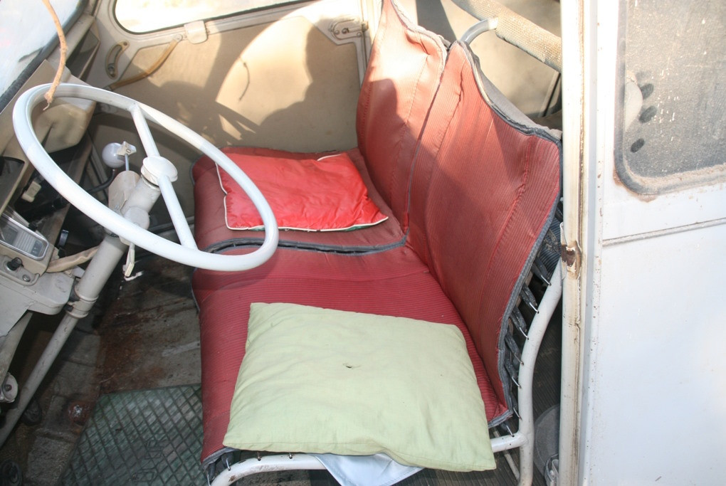 Elle n'est pas en super état : capot a changer, aile avant gauche fendue mais surtout plancher conducteur et passager à changer. Quelques points de rouille sur la carrosserie pour le reste dans son jus d'époque