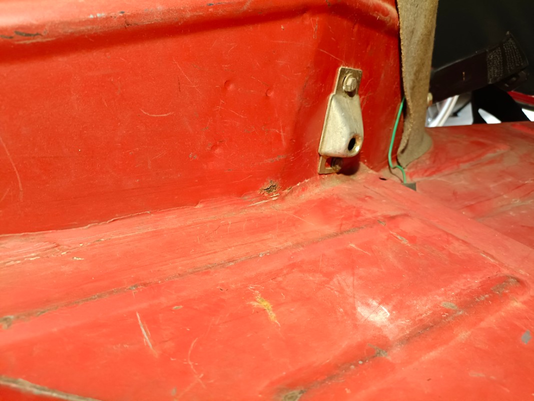 Le fond de coffre est OK, mis à part 3 points de rouille sous le joint. J'ai brossé et passé un convertisseur de rouille en attendant mieux.
