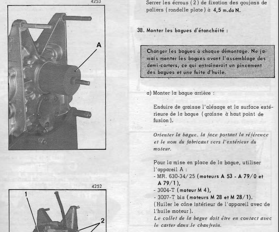 montage des chemises et des pistons, reniflard neuf, caches culbuteurs repeints, jauge à huile, présentation des culasses refaites à neuf,