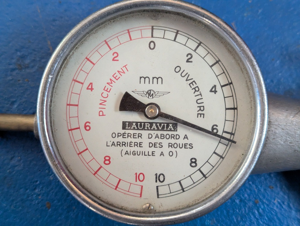 PS : j'ai récupéré hier - par hasard - un outil ancien de pro pour régler le pincement / l'ouverture des roues.