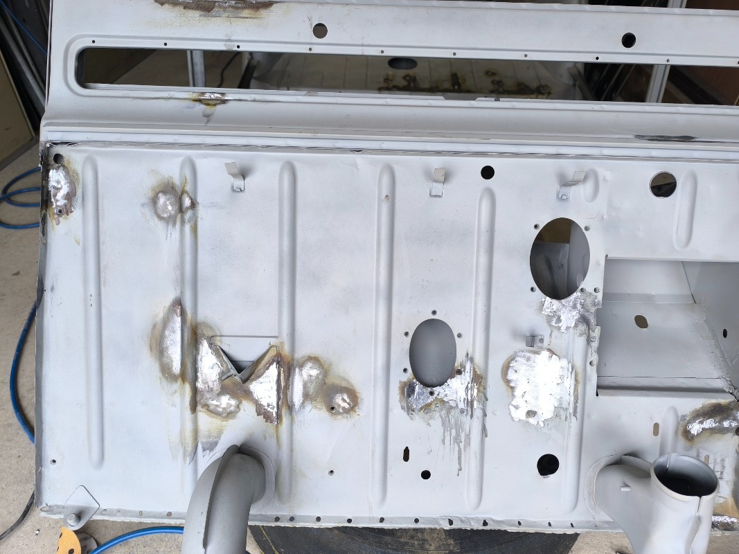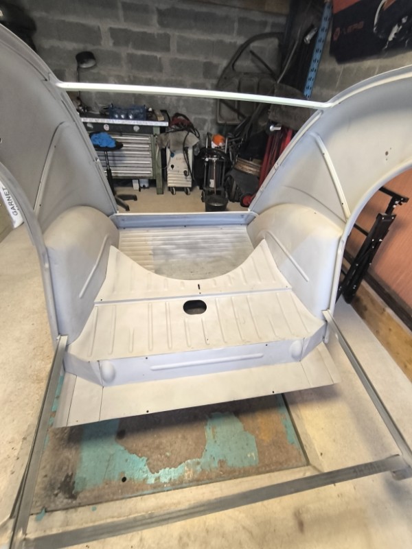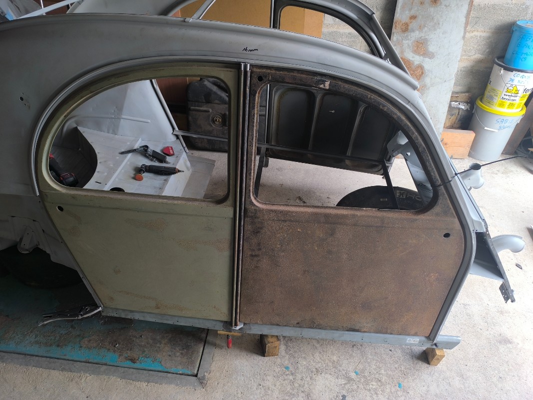 Je suis sur la restauration de ma caisse, après avoir déposé mes planchers, joue d'ailes, bas de caisse et partie supérieure du caisson sous banquette, et avoir effectué un sablage total du reste J'ai commencé par réparé à l'étain les quelques petits trous (beaucoup!!) sur la carrosserie Je m'attaque au montage à blanc des bas de caisse ! 1er question: Quels sont les dimensions des entrées de portes (diagonale et autres) et quels est la hauteur de réglage des portes (15-20mm ?) 2ème question: comment rassembler le caisson sous banquette ! Sachant que je change uniquement la partie supérieure et les deux angles ! Faut-il en premier mettre en place la partie qui fait l'angle, puis les bas de caisse, souder les bas de caisse côté intérieur, puis y insérer les deux angles! ?