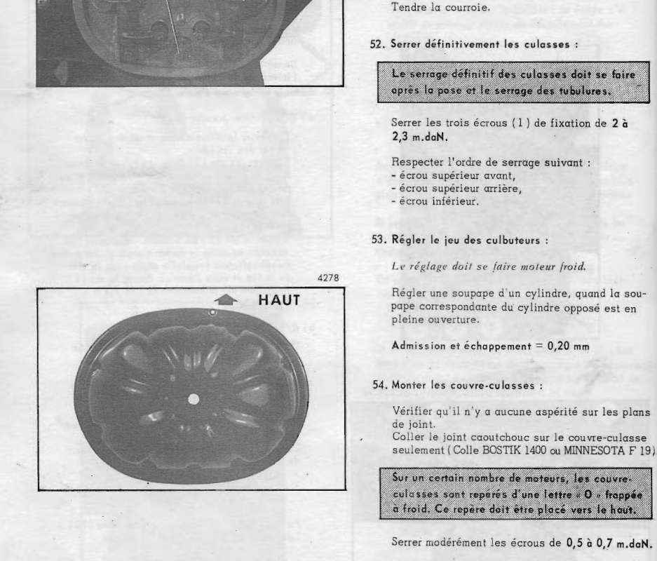 Pour le couple de serrage de la culasse j'ai en tête 20Nm mais il me semble qu il y a autre chose...un ordre de serrage que je ne me souviens plus..si vous l avez en tête.