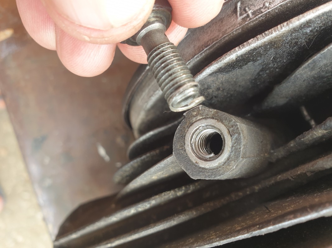 Bilan: puit de bougie à refaire, il est vraiment ko, un tube des tiges des soupapes est abîmé et le pas de vis de la vis banjo du radiateur d huile est venu avec la vis....d ailleurs on dirait qu il a déjà été refait et que c est le coil qui s en va..