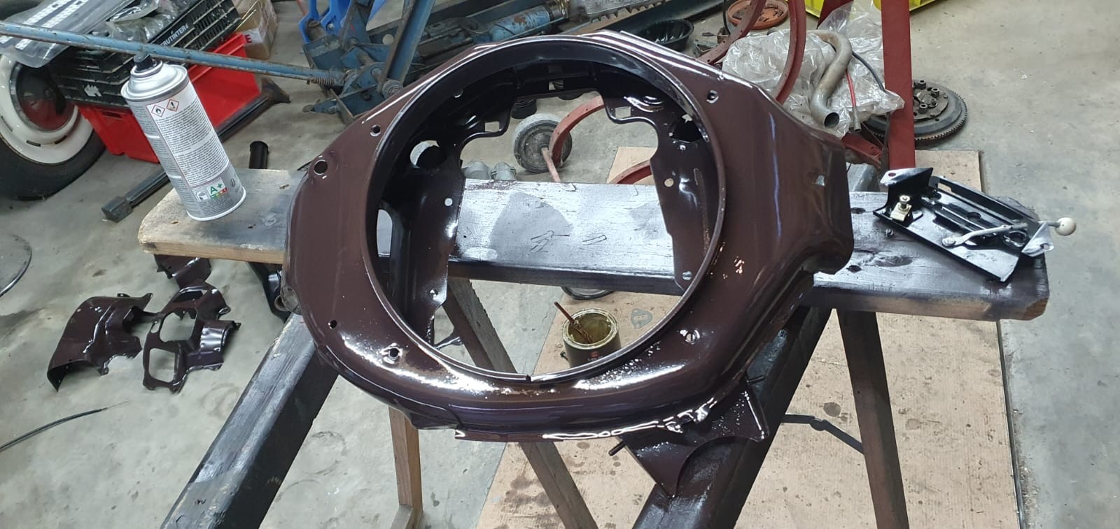 En attendant je vous livre les photos du remontage qui commence à avancer, même si la caisse n'a pas rejoint le chassis vu qu'on a toujours pas reçu les coupelles des pots....
