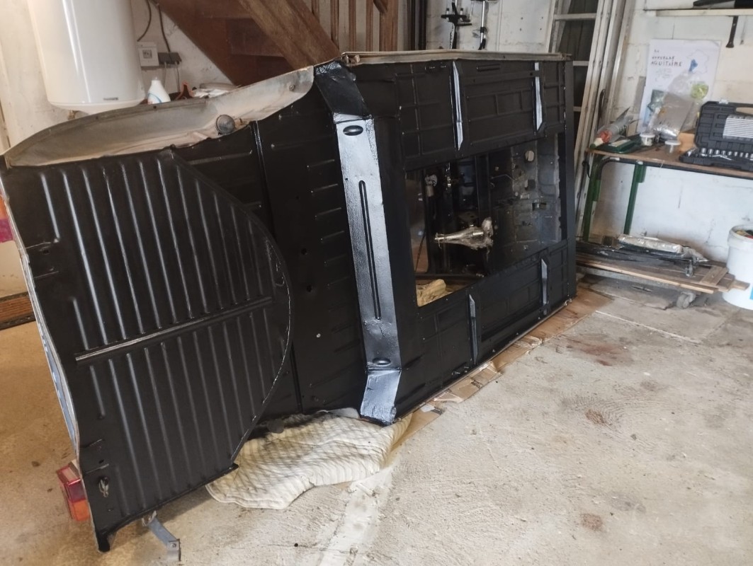 Un ami est venu pour diagnostiquer qu'il y a avait de nombreux soucis en plus de l'allumage et de la corrosion: carburation, échappement et j'en passe. Malheureusement cet ami était rarement disponible, me laissant avec un carburateur démonté entre les mains. Autour de nous de nombreux conseils fusaient. Les experts du "il suffit", "il faut", "demande à"... mais qui ne sont au final jamais disponibles m'ont résolu à me lancer seul. Je suis cadre en marketing. Autant dire pas mécano pour un sous mais j'adore le bricolage, et suis de nature patient. Je me suis donc lancé grâce à toutes les informations très bien documentées que l'on retrouve sur Internet. Carburateur remonté, allumage réparé via un allumage électronique et une bobine sèche, ce qui m'a permis de passer le CT. Le CT était clair, elle passe cette fois mais si la rouille perforante sous le châssis n'est pas traitée, ce sera la dernière. Démontage de l'intégralité du bolide, découpage du châssis pour traiter la rouille. Soudage, antirouille, peinture (ça c'est madame qui le fait, elle s'est pris au jeu également). Réparation du planché de la caisse, soudage, antirouille, peinture (toujours madame). réhabillage de l'intérieur, remise du moteur. Elle a démarré !