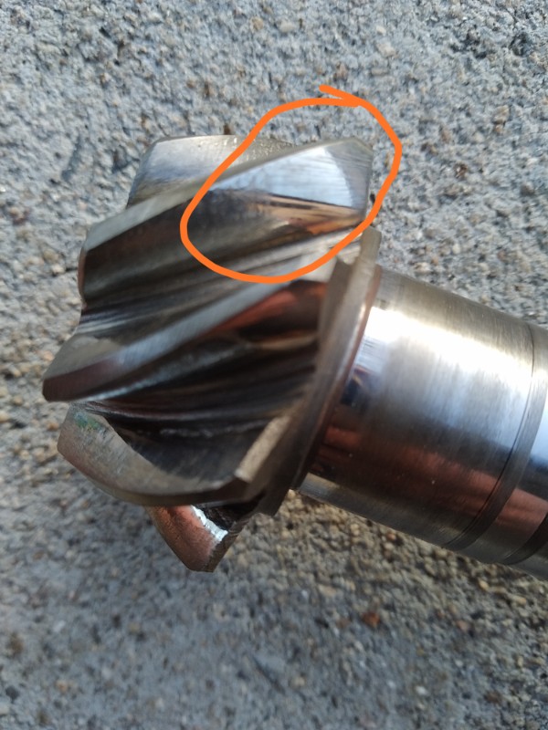 J'ai également déshabiller le pignon conique de la 1ère BV. Il y a des reflets violets sûrement liés à l'échauffement.