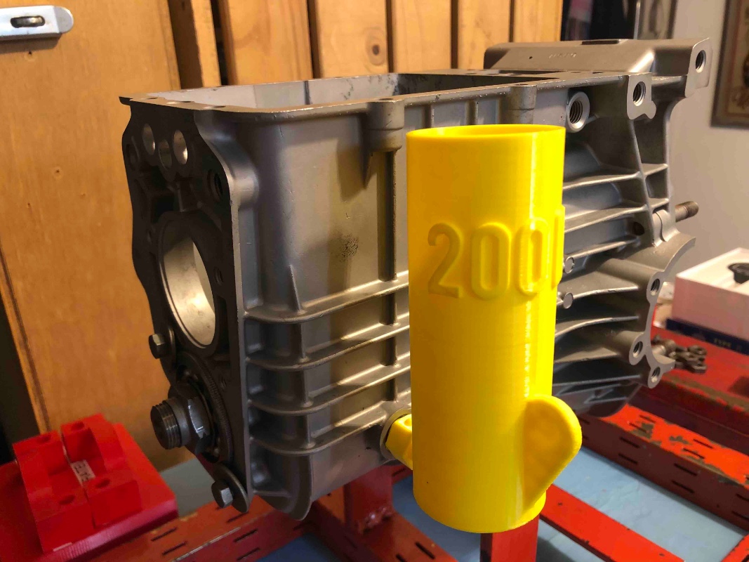 Le contenu du réservoir est de 200 ml, à ras bord et la boîte contient 900 ml d’huile !
