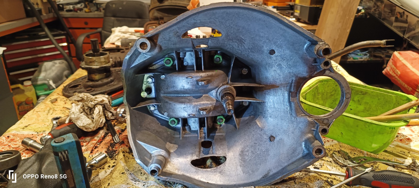 pendant ce temps, on nettoie les deux parties du bloc moteur.