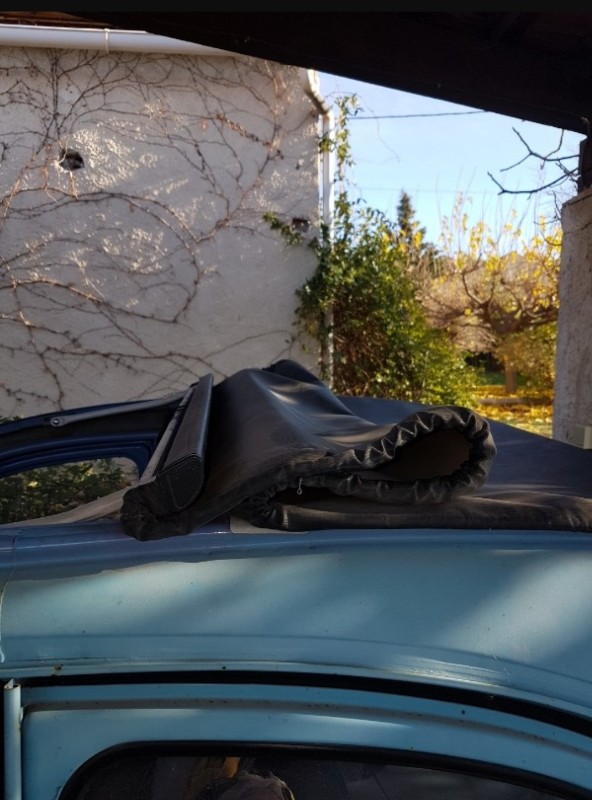 Cette 2 Cv a une capote avec fermeture de l'extérieur. mais comme elle est difficile à refermer, nous voulons la convertir en fermeture intérieur.