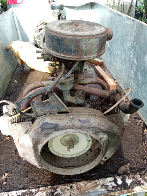Il a sans doute équipé un tracteur ou une tondeuse, d'où le renvoi d'angle de type "Peugeot" au-dessus du volant, pour le câble d'accélérateur. Et un filtre à air genre "Renault" en prime