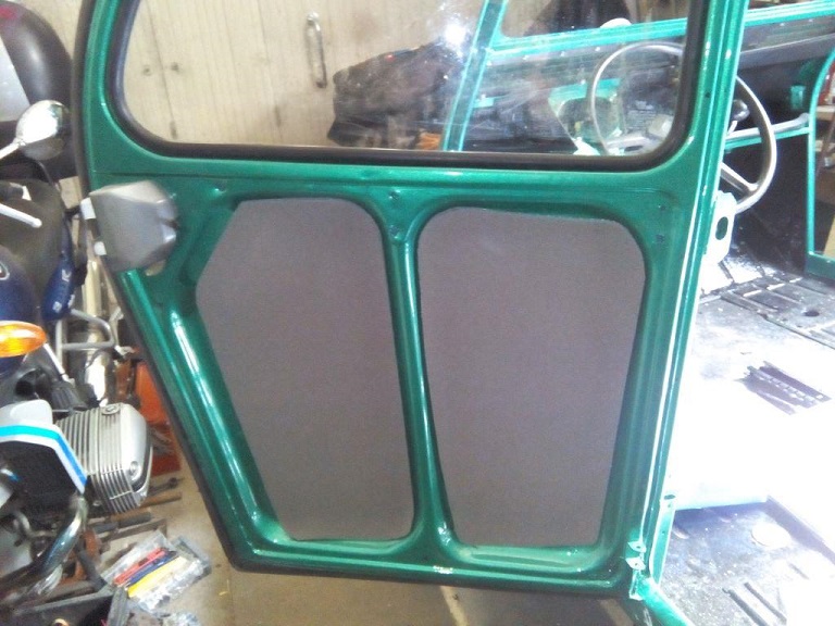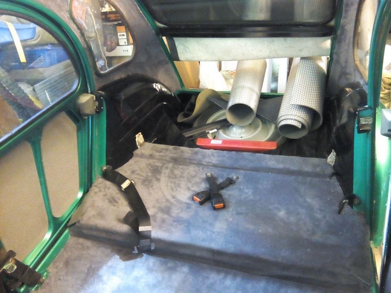 Il y a eu de la soudure, du décapage, du martelage,du masticage, du ponçage, du masticage, du ponçage [prendre les deux derniers mots et les répéter Ad Libitum] :D; de la peinture, de l'assemblage, de la sellerie (moquette au sol et sur les côté, isolant thermique et phonique dans les portières et réfection des panneaux de porte, fabrication d'un plancher de coffre et d'un panneau pour la porte de coffre) pose d'un allumage électronique, d'un lave-glace électrique ((en promo à 15 € sur un site web siégeant à Amboise), des diodes pour remplacer les voyants et les ampoules veilleuses et stop : les codes/phares sont en H4.