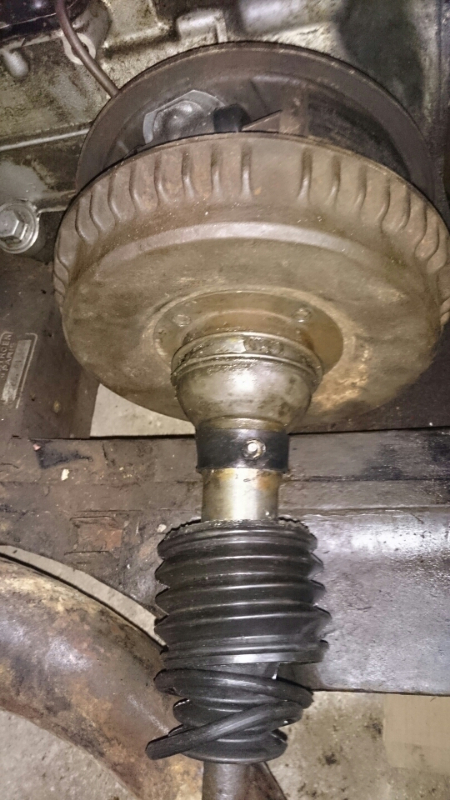 Même en enlevant le cardan côté roue, on ne réussit pas à retirer le tambour déjà du côté droit, à gauche, il y a encore moins de place ...