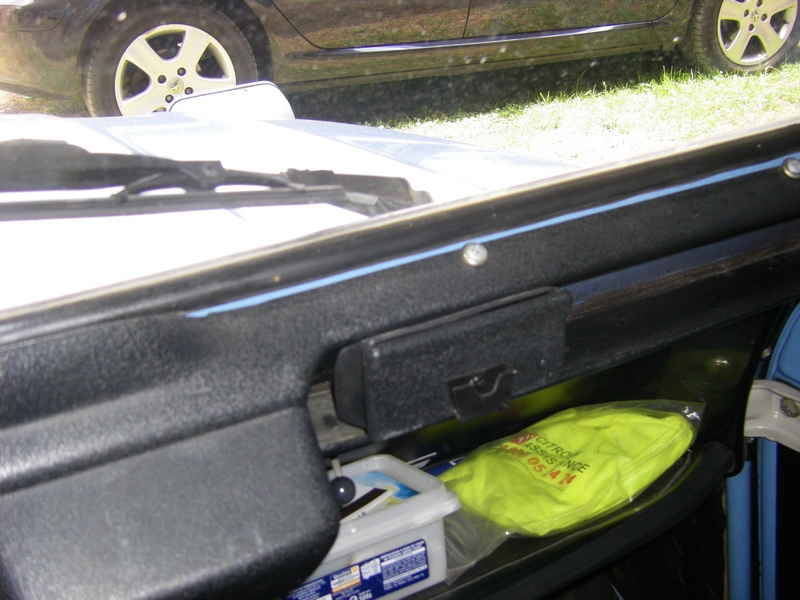 2) sangles de caoutchouc pour fermer la porte arrière, je suppose ? Il y en a sur une 2 CV de 1982 ? La manoeuvre de la porte se fait plutôt par le bandeau ? Sinon, la sangle est vissée en haut du panneau de porte au milieu à environ 3 cm du haut.