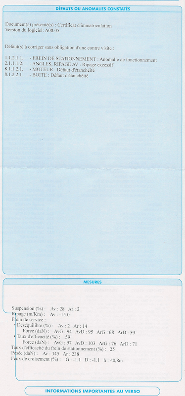 Bonjour à tous, tout à l'heure, passage de la 2cv au CT (elle l'a eu :clap: , avec 4 points à revoir sans contre visite). :volant: