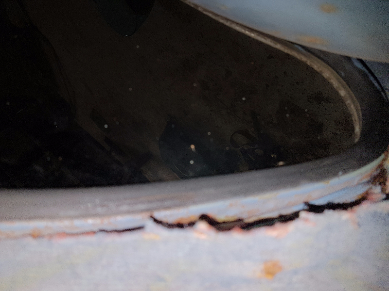 tu découvriras certainement que la partie inférieure du cadre a disparu de par la corrosion, le joint ne reposant plus uniformément, il a pris cette forme courbe.