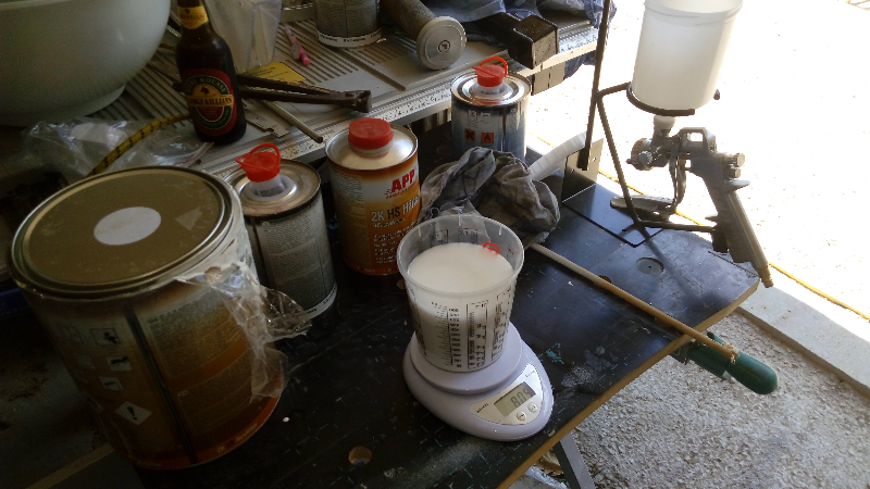 1 kilos de peinture,1 litre de diluant, 1 litre de durcisseur...