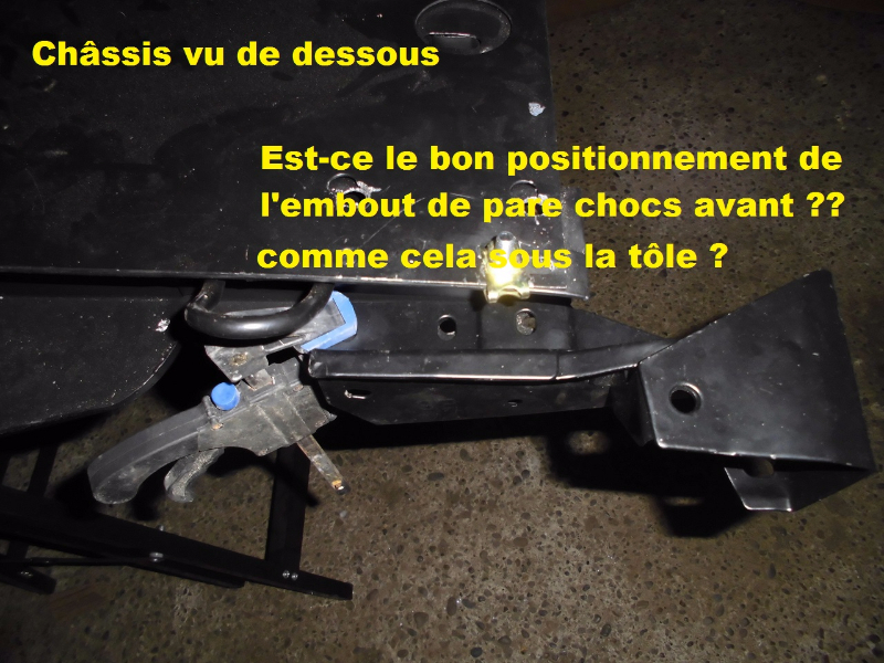 Mais ce que je recherche est comment fixer les supports de pare-chocs avant et arrière (tant qu'à faire...) sur le châssis nu.... En plus, est-il préférable de de le faire sur le châssis nu (tel qu'il est actuellement et j'aimerais bien car comme cela je pourrais en profiter pour leur passer aussi deux couches d'époxy..) ou bien vaut-il mieux attendre que la caisse soit remontée...