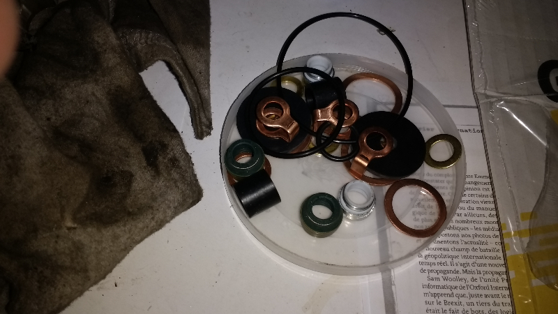 Les 2 joints ont le même diamètre intérieur mais je n'ai pas réussi à monter le blanc en nylon sur la soupape d'échappement dont la tige a le plus gros diamètre.