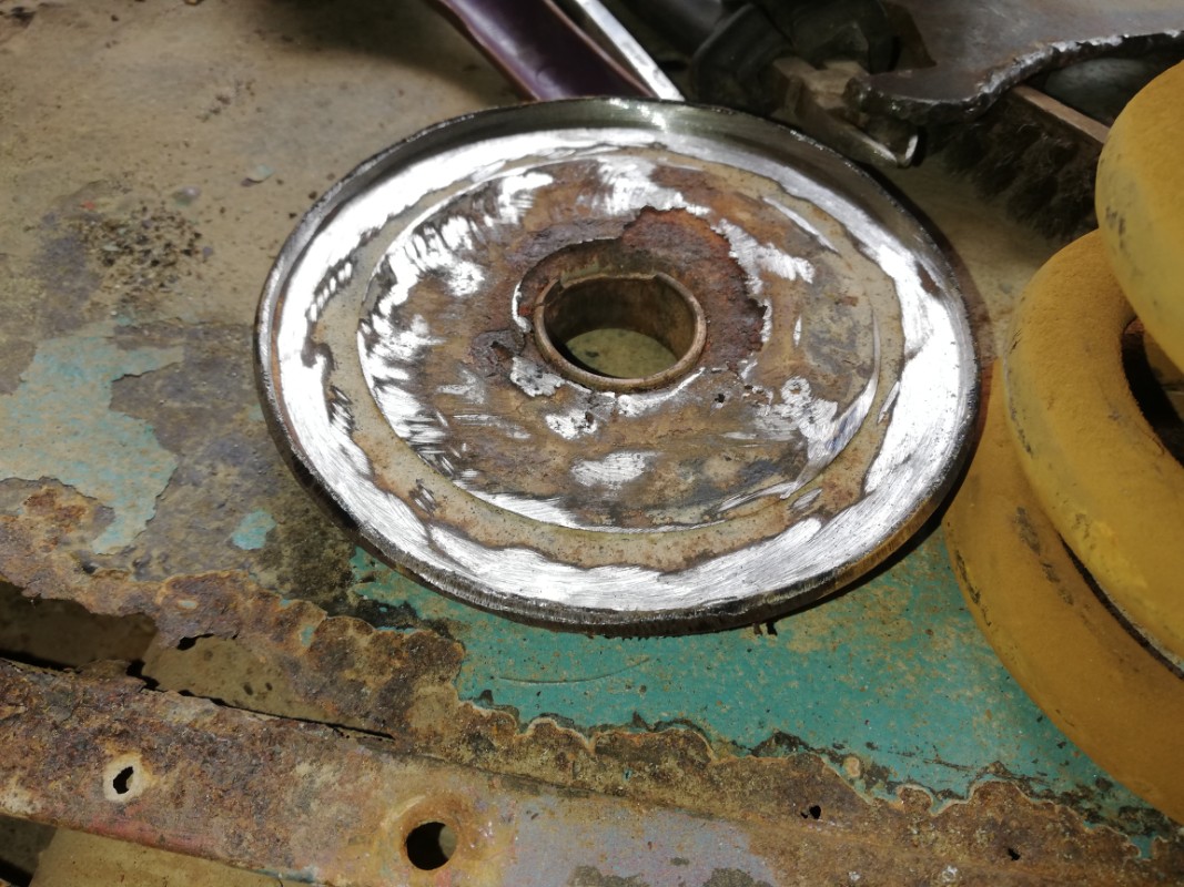 Je n'ai pas rencontré de gros problèmes pour extraire la bague et les roulements, sauf pour un roulement qui est sorti complètement désossé, ne restait que la cage, du coup j'ai dû souder un bout de fer plat au centre de la cage pour pouvoir la sortir en tapant du côté opposé...j'ai férosé le tout...c'est pas tout à fait sec encore...