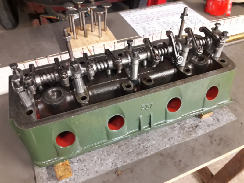 L'empilage sur l'axe de culbuteur est fait reste à mettre les joints ( que je n'ai pas ) et à serrer le tout , et peindre l'extérieur de la culasse en vert moteur .