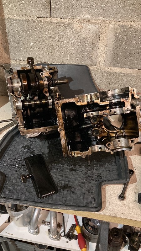 C'est la première fois que je vois mon vilebrequin, j'ai pu voir aussi l'arbre à came, un nettoyage ne sera pas inutile.