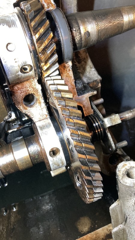 Moteur démonté, c'est en fait très facile ! le vilebrequin est sans jeu, toutes les dents sont parfaites, les cames ne sont pas usées et elles sont bien lisses. Le moteur est bon ! je suis rassuré.