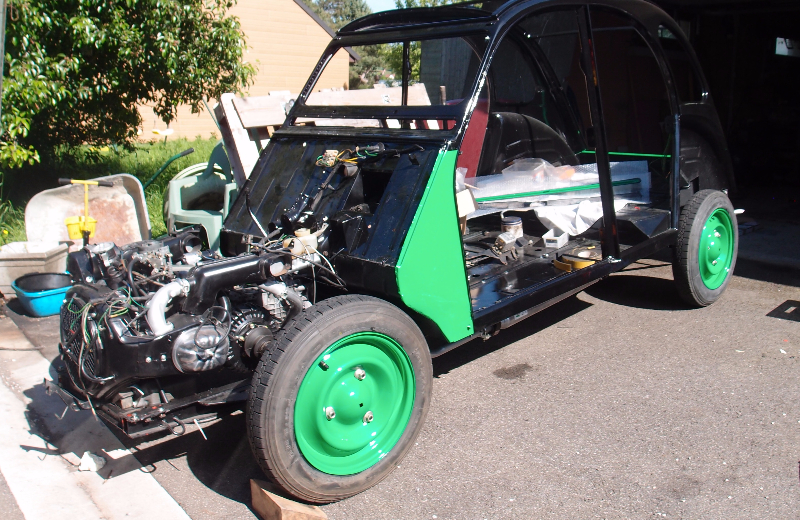 quelques nouvelles; la deuche roule bien, en dehors d'un soucis de craquement lors du passage en deuxième, ce qui va m'obliger à déposer le moteur et la boite pendant l'hiver prochain.