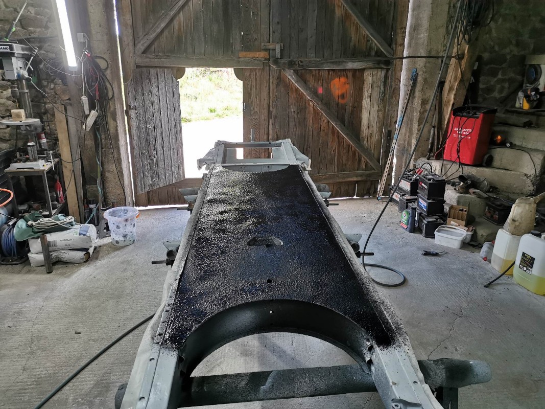 voila demain sera un autre jour mais pour ma part il reste ponçage de l'apprêt époxy masticage pose d'un joint étanche sur tout le long du châssis application de l'anti gravillon et mis en peinture est le châssis sera fini